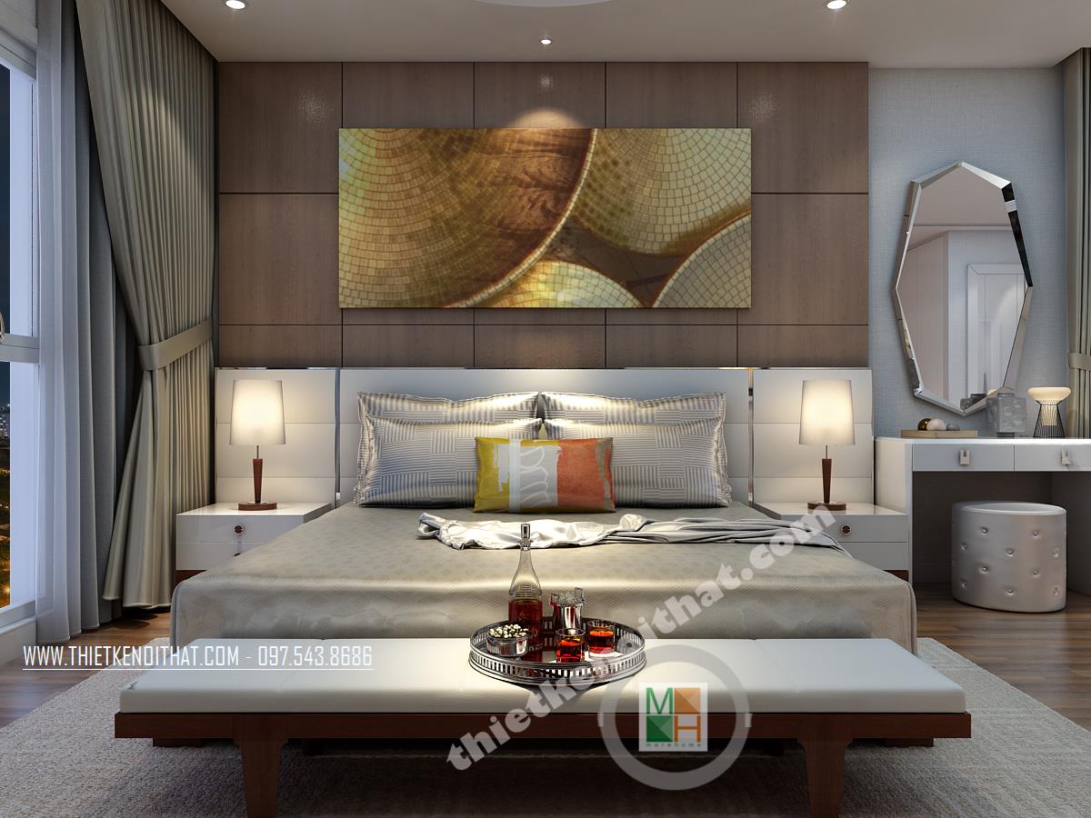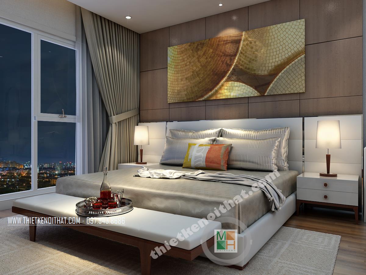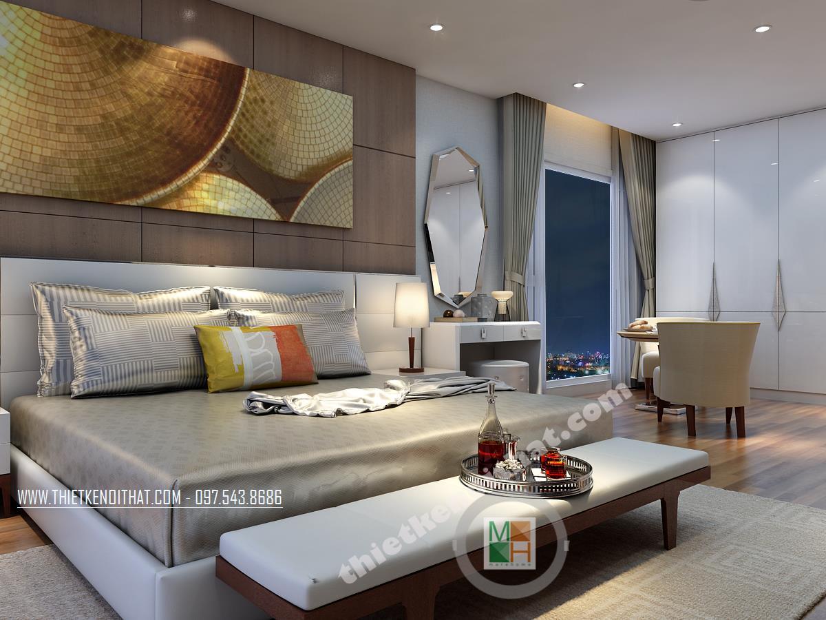 Thiết kế nội thất phòng ngủ khách sạn 4 sao theo phong cách hiện đại với view thoáng từ trên tầng cao nhìn ra không gian bên ngoài