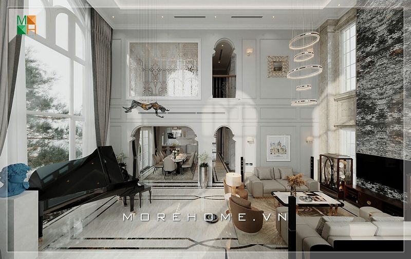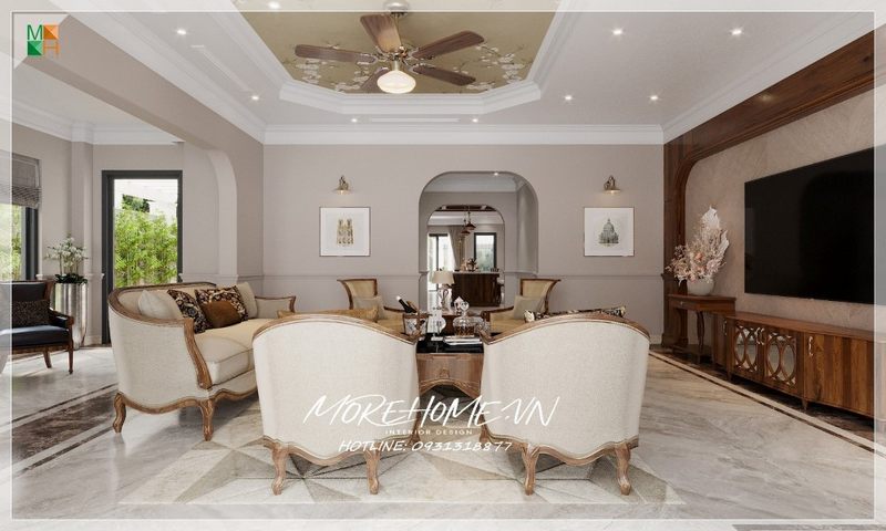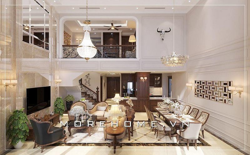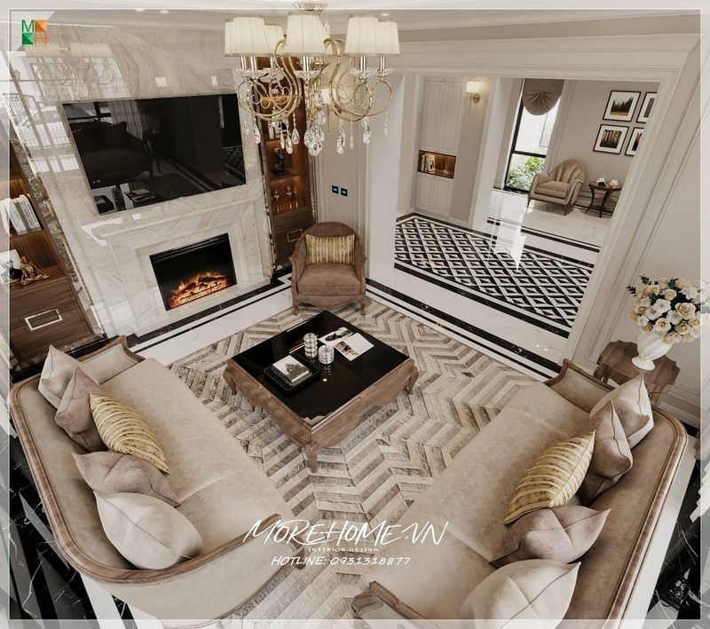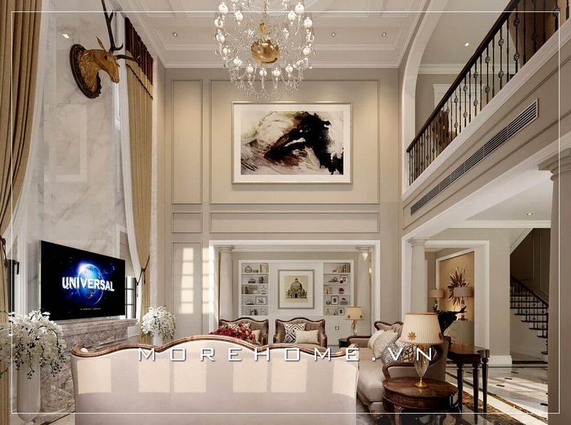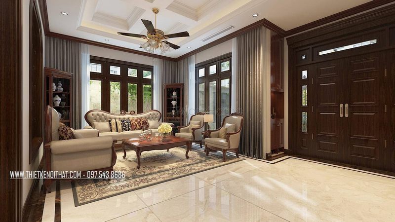 Thiết kế không gian phòng khách biệt thự sang trọng với nội thất tân cổ điển thể hiện cá tính và đẳng cấp của gia chủ