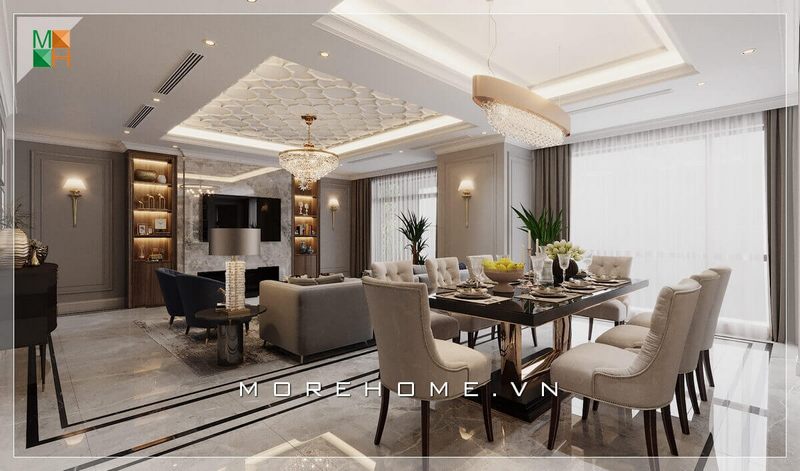 Tạo ra một không gian nội thất đẹp mắt và tiện nghi cho phòng khách và phòng ăn chung của căn hộ, biệt thự.